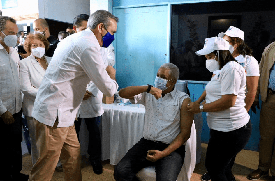 Barahona.- El Presidente Luis Abinader inició su agenda de trabajo en Barahona dando continuidad al Plan Nacional de Vacunación (VacúnateRD), en el punto de inoculación ubicado en la Iglesia Buenas Nuevas.